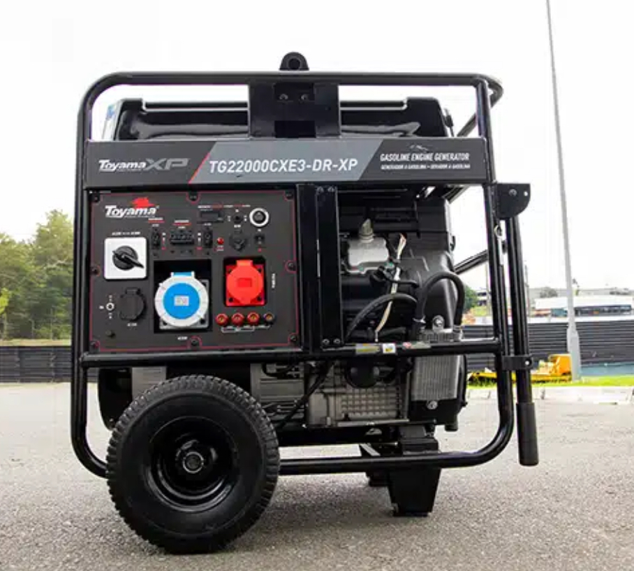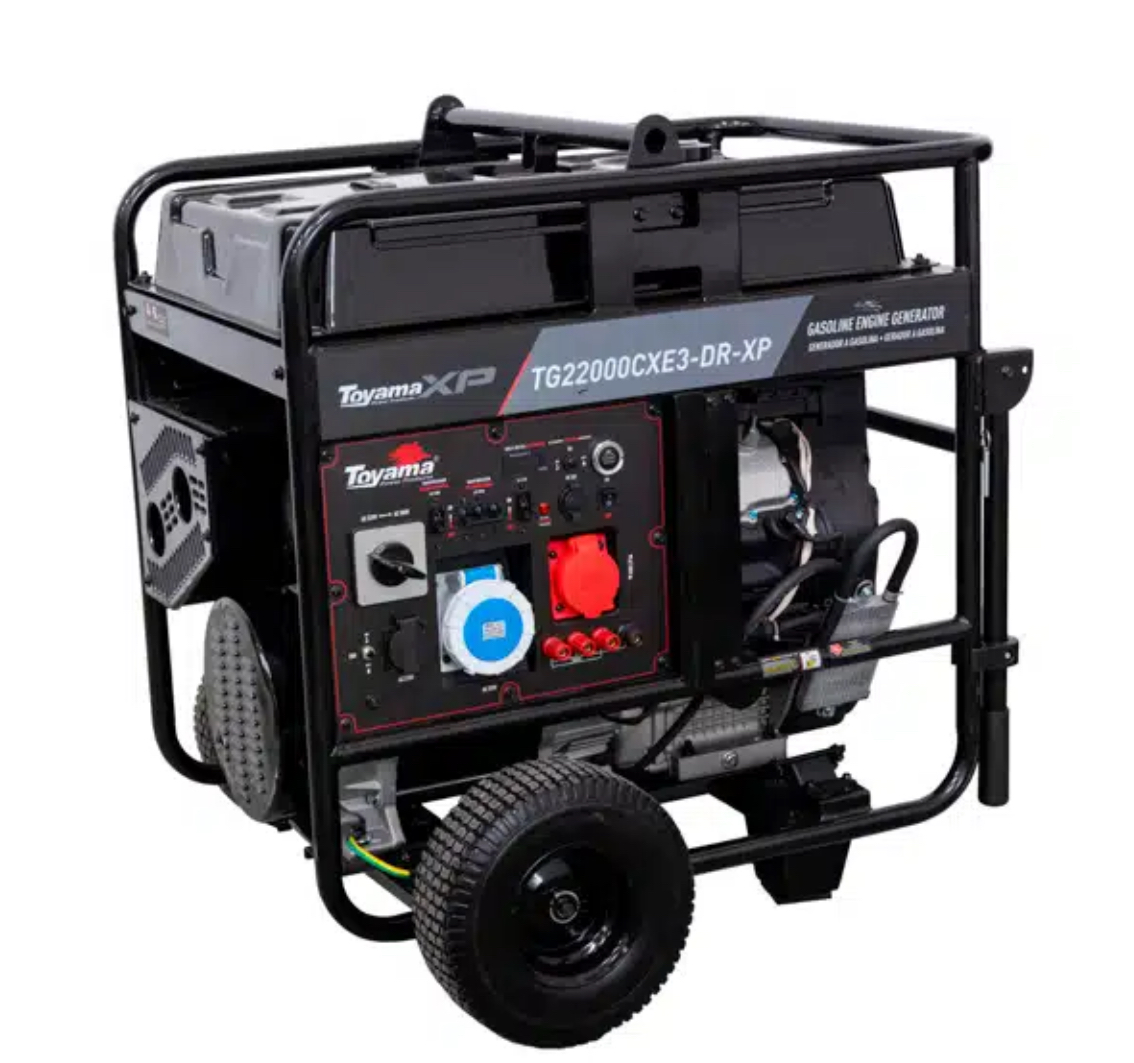 O Grupo Gerador de Energia Toyama TG22000CXE3-DR-XP de corrente alternada foi desenvolvido para o uso profissional. É equipado com um potente e resistente motor a gasolina 4 tempos com 999 cc, V-Twin, refrigerado a ar, com partida elétrica.